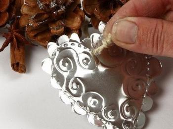 Da bo venček zasijal, premažite storže s pasto z bleščicami Marabu Vegas Glitter. Pri nanosu si pomagajte s čopičem. Za iskreče bleščanje nanesite pasto v več slojih.