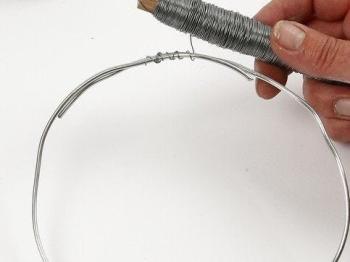 Iz aluminijaste žice izdelajte osnovo za venček. Osnovo lahko izdelate tudi iz kovinskega obroča.