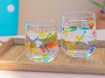 Počitnice obožujemo, ker imamo končno dovolj časa za ustvarjanje. Naš tokratni navdih smo poiskali kar v kačjih pastirjih, ki smo jih narisali na kozarce s pomočjo flomastrov za steklo in porcelan Marabu Porcelain & Glas Painter. Risanje po steklenih kozarcih je zabavno in primerno za družinsko ustvarjanje - tudi z najmlajšimi otroki. Poleg kozarcev za pitje lahko porišete tudi skodelice iz porcelana, kozarce za vlaganje in različno steklovino.