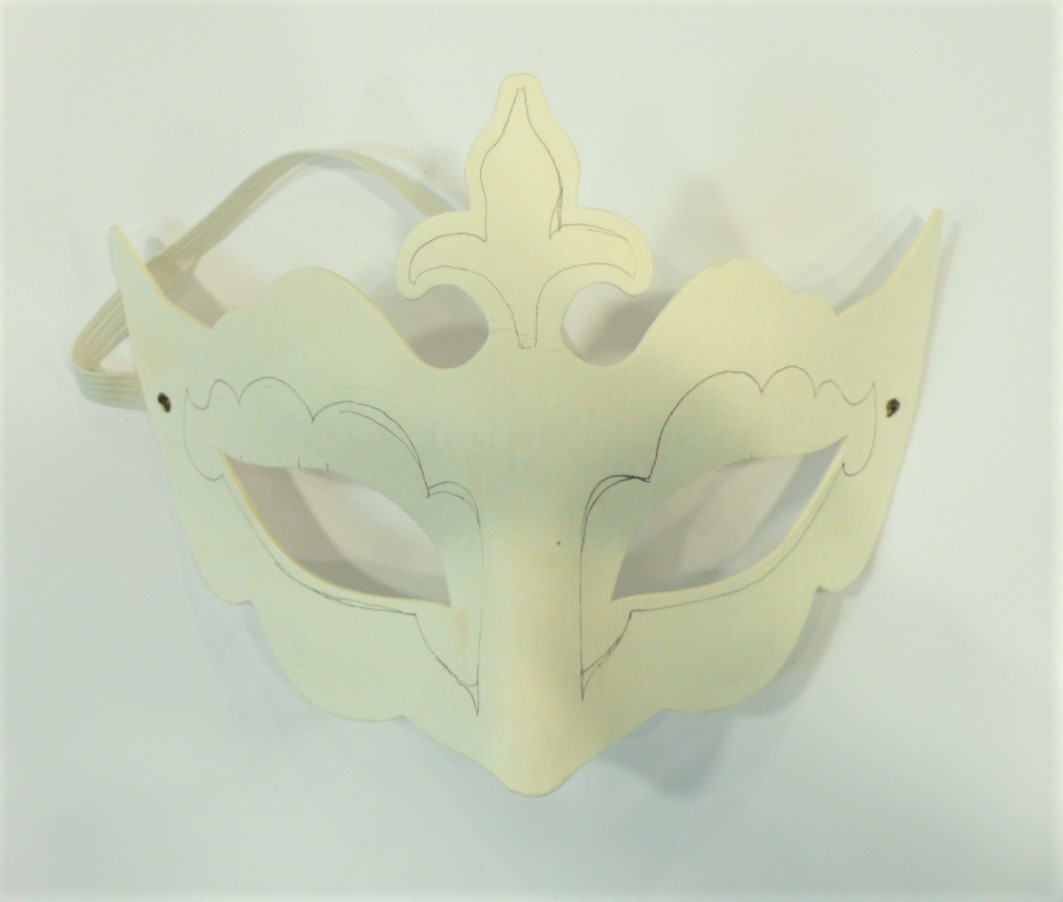 Pripravite srebrno akrilno barvo Marabu Decorlack in jo premešajte s paličico. Masko pobarvajte v dveh slojih, pri čemer pred nanosom drugega sloja počakajte, da se prvi sloj barve temeljito posuši.