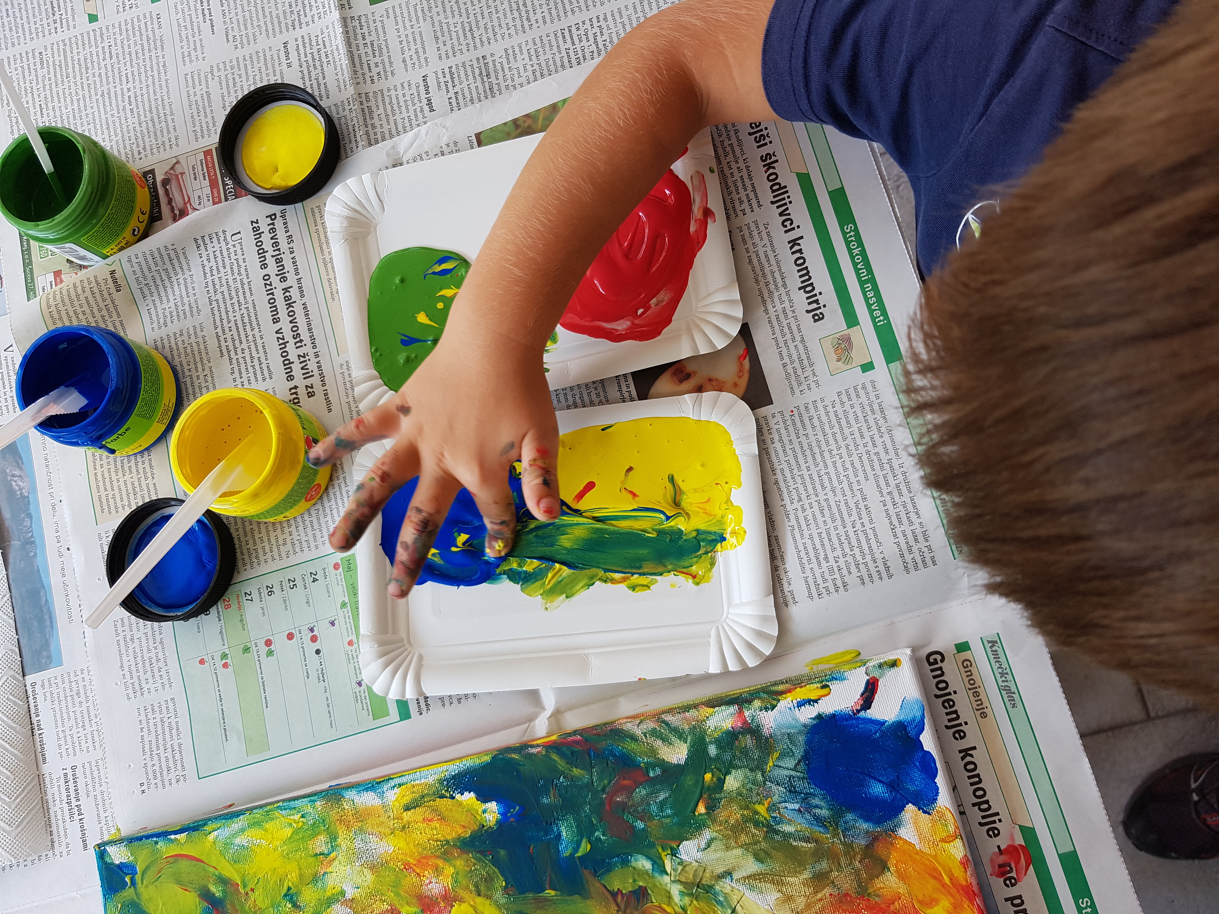 Izdelajte več umetnin in pripravite domačo razstavo. S prstnimi barvami je ustvarjalna zabava zagotovljena!