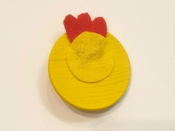 S pištolo za vroče lepljenje prilepite oranžen košček filca, da dobite kljun piščančka. Pri rokovanju s pištolo bodite previdni, ker je lepilo zelo vroče!