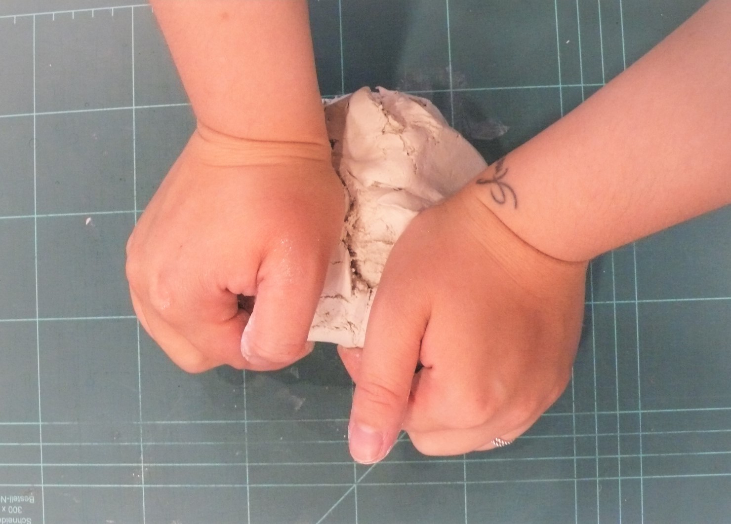 Modelirno maso FIMOair Basic pregnetite. Če je masa pretrda, jo navlažite z manjšo količino vode.