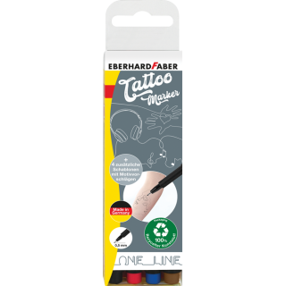 Komplet vsebuje 4 tanke flomastre (debelina črte 0,5 mm - črna, rdeča, modra, rjava) in 4 šablone z več kot 20 motivi. Za dolgotrajen in realističen videz Tattoo-ja (viden do 60 ur). Uporaba je povsem preprosta! S flomastrom narišite motiv in počakajte približno 5 minut, da se barva posuši. Motiv lahko povsem enostavno odstranite z vodo in milom. Iz večine tkanin lahko madeže izperete s pranjem v pralnem stroju pri temperaturi 40 °C z običajnim programom pranja. Barvni odtenki se na različnih vrstah in barvah kože lahko razlikujejo. Dermatološko testirani!