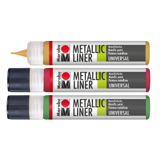 Barva Marabu Metallic Liner omogoča izdelavo bleščečih kovinskih efektov na različnih podlagah, npr. papirju, kartonu, lesu, keramiki, steklu in celo na tkaninah, ki vsebujejo največ 20 % umetnih vlaken. Po končanem toplotnem utrjevanju (z likalnikom ali v kuhinjski pečici) je barva na tkaninah odporna na pranje (do 40 °C). Barva je izdelana na vodni osnovi, primerna je predvsem za risanje različnih dekoracij, črt ali okraskov. Rišete lahko direktno iz plastenke, brez uporabe čopiča!