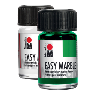 Barve za marmoriranje Marabu Easy marble so izdelane na osnovi organskih topil. V vodi niso topne, zato kot medij za marmoriranje lahko uporabite kar vodo. Barve za marmoriranje so primerne za uporabo na različnih materialih, tako na plastiki, lesu, steklu, papirju, japonskem papirju, svečah, kartonu, stiroporu in celo na svili in ostalih tankih tkaninah. Manjše predmete lahko marmorirate s potapljanjem v vodo, na katero nakapljate barvo Marabu Easy marble, za večje predmete in tkanine pa priporočamo uporabo preprostega medija za marmoriranje, npr. lepila za tapete. Barve za marmoriranje Marabu Easy marble niso primerne za barvanje živil!