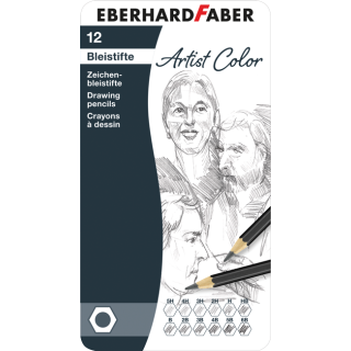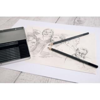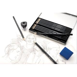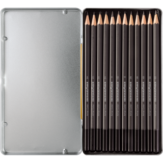 Komplet vsebuje 12 svinčnikov različnih trdot: 5H, 4H, 3H, 2H, H, HB, B, 2B, 3B, 4B, 5B in 6B. Grafitni vložki premera 3 mm so odporni proti lomljenju. Svinčniki so primerni za pisanje, risanje in skiciranje. Pakirani so v kovinsko embalažo.