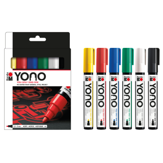 Univerzalni akrilni flomaster Marabu YONO je polnjen z visokokakovostno mat akrilno barvo na vodni osnovi, ki je dobro prekrivna (razen fluorescentnih barv, ki so srednje prekrivne) in odporna na bledenje (razen fluorescentnih barv, ki so le delno odporne na bledenje. Intenzivne barve, ki so skoraj brez vonja, ponujajo številne možnosti. Ni važno kakšno nalogo na kakšni podlagi želite opraviti – eden za vse!
