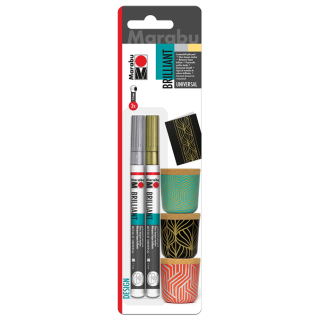 Flomastri Marabu Brilliant painter so univerzalni flomastri za pisanje in dekoriranje na skoraj vseh površinah. Primerni so za uporabo v šoli, v prostem času in v različnih hobi dejavnostih. Barva (sijajen lak izdelan na osnovi organskih topil, ki ne vsebuje toluena/xylena) dobro prekriva in se hitro suši. Odporna je proti bledenju, pri pravilnem nanosu tudi vodoodporna. Zato so ti flomastri nadvse primerni za prekrivne risbe na steklu, kovinah, plastiki, kartonu, papirju, lesu in glini. Uporabljate jih lahko tudi na številnih drugih gladkih, poroznih, prosojnih ali temnih površinah. Lahko jih uporabite tudi v kombinaciji z barvami Marabu Decorlack Acryl in Marabu Liner-ji. Površine, pobarvane s flomastri Marabu Brilliant painter so sijajne.
