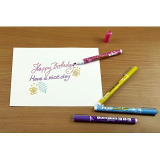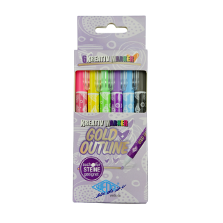 Komplet vsebuje naslednje kombinacije zlatega flomastra in obrobe: rožnata, rumena, zelena, vijoličasta, modra in črna.