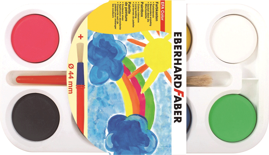 Plastična barvna paleta z osmimi zamenljivimi, visokokakovostnimi vodenimi barvami premera 44 mm in čopičem. Porabljene barvne tablete lahko zamenjate z novimi. Plastična barvna paleta je odporna proti lomljenju.