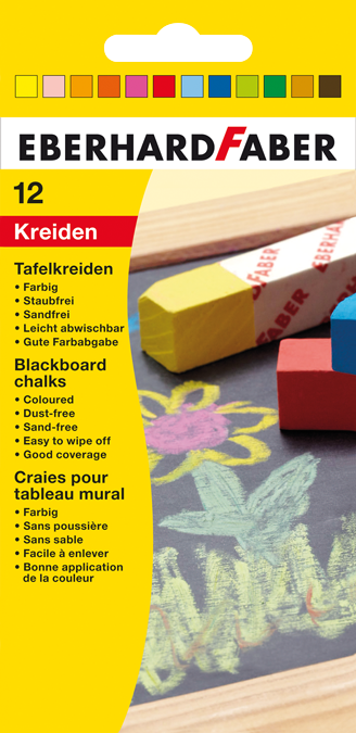 Krede Eberhard Faber so primerne za delo v šolah, vrtcih in doma. V kredah, ki so kvadratne oblike in dolge 9 cm, ni drobnih, trdnih zrnc, ki motijo pri pisanju. Med uporabo se z njih ne lušči prah, odporne so tudi proti lomljenju. Vsaka paličica krede je zavita v papir (pri uporabi ga enostavno povlečemo nazaj), zato pušča barvno sled le na risalni podlagi in ne tudi na prstih.