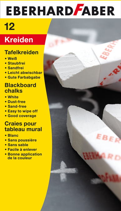 Krede Eberhard Faber so primerne za delo v šolah, vrtcih in doma. V kredah, ki so kvadratne oblike in dolge 9 cm, ni drobnih, trdnih zrnc, ki motijo pri pisanju. Med uporabo se z njih ne lušči prah, odporne so tudi proti lomljenju. Vsaka paličica krede je zavita v papir (pri uporabi ga enostavno povlečemo nazaj), zato pušča barvno sled le na risalni podlagi in ne tudi na prstih.