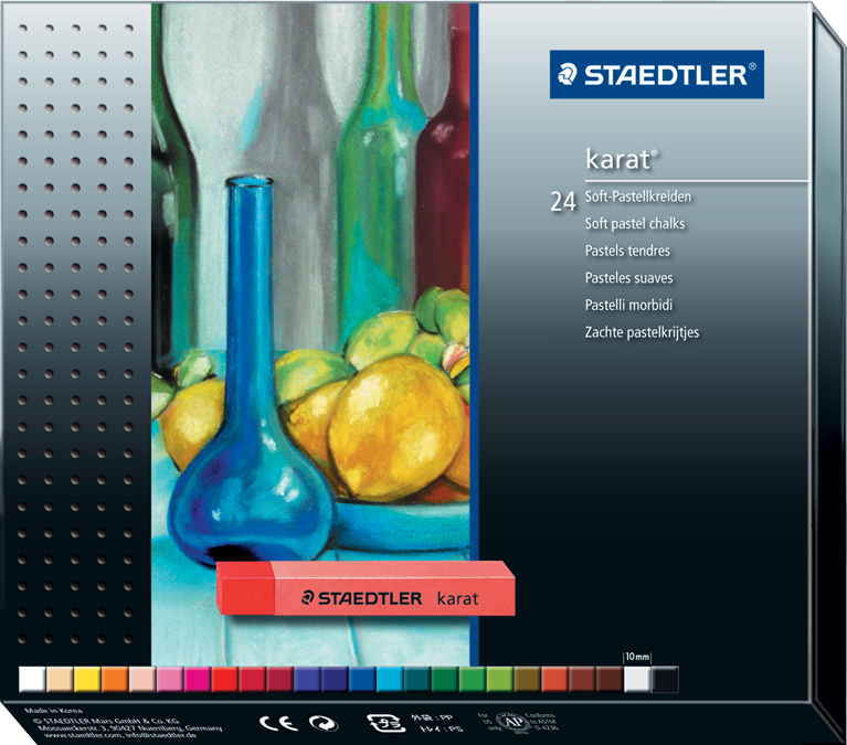 Suhi pasteli vrhunske kakovosti so na voljo v obliki kvadratnih kred debeline 10 x 10 mm in dolžine 64 mm. Vsaka kreda je ovita v papir. Suhe pastele - krede odlikujejo sijajne čiste barve, visoka stopnja odpornosti proti bledenju, mehkoba pri risanju, popolno mešanje in senčenje (s prsti, krpico, papirjem ali čopičem), visoka odpornost proti lomljenju, lahko jih popolnoma odstranimo. Suhe pastele lahko uporabite na različnih vrstah papirja. Priporočamo zaščito (fiksiranje z npr. Fixative Marabu) dokončanih slik. Kompleti so pakirani v kartonske škatle.