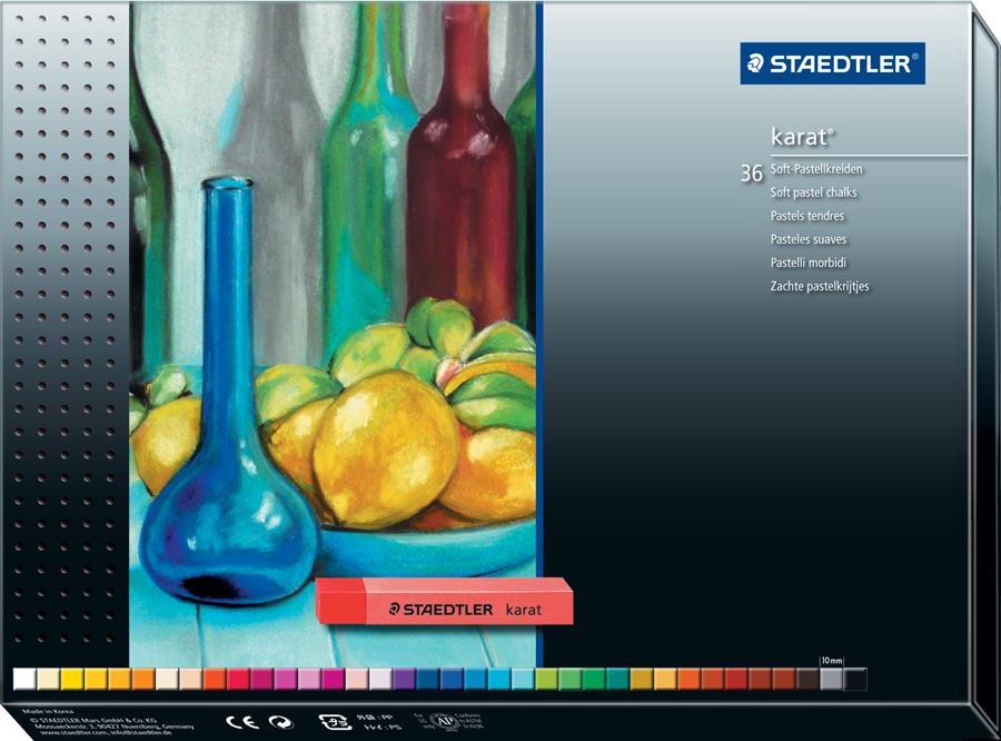 Suhi pasteli vrhunske kakovosti so na voljo v obliki kvadratnih kred debeline 10 x 10 mm in dolžine 64 mm. Vsaka kreda je ovita v papir. Suhe pastele - krede odlikujejo sijajne čiste barve, visoka stopnja odpornosti proti bledenju, mehkoba pri risanju, popolno mešanje in senčenje (s prsti, krpico, papirjem ali čopičem), visoka odpornost proti lomljenju, lahko jih popolnoma odstranimo. Suhe pastele lahko uporabite na različnih vrstah papirja. Priporočamo zaščito (fiksiranje z npr. Fixative Marabu) dokončanih slik. Kompleti so pakirani v kartonske škatle.