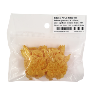 Dekoracije v traku, 20 x 15 mm, zajec s pirhom, rumene, dolžina 1 m