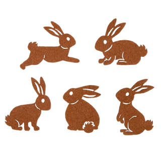 Okraski iz filca, "Zajčki", 40 x 48 - 60 x 40 mm, rjavi, 5 kosov