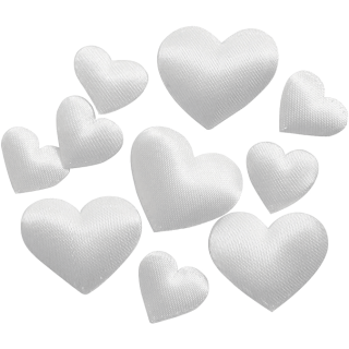 Srčki iz satena, 10 + 20 mm, beli, 70 kosov