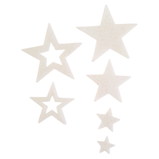 Okrasek iz filca "Zvezdice", 2 / 2,5 / 4,5 / 5 / 6,5 cm, bel, 1 kos
