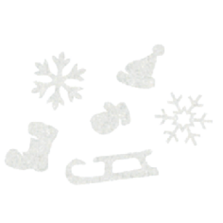 Okraski iz filca "Zima", 2 / 2,5 / 3 / 3,5 / 5 cm, beli, 6 kosov