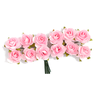 Rožice iz papirja na žici, 15 mm, rožnate, 12 kosov