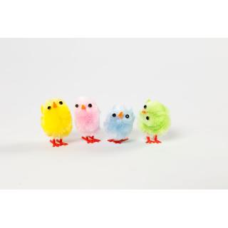 Komplet vsebuje 12 piščančkov velikosti 30 mm. Puhasti piščančki s plastičnimi nožicami so na voljo v 4 različnih pastelnih barvah.