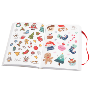V knjigi formata 11,5 x 17 cm je 76 strani oz. približno 1.700 nalepk z različnimi božičnimi motivi, ki jih lahko uporabite ob različnih priložnostih. Nalepke ne vsebujejo kislin in lignina.