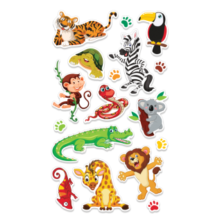 Komplet nalepk iz filca, džungla, 1 - 6.4 cm, 17 nalepk