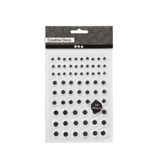 Komplet samolepilnih gibljivih očes, okrogla, Ø8 + 12 + 14 mm, 69 kosov