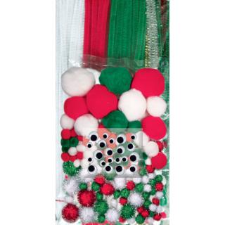 Komplet cofkov in kosmatih žic, rdeča, zelena, bela, 300 kosov