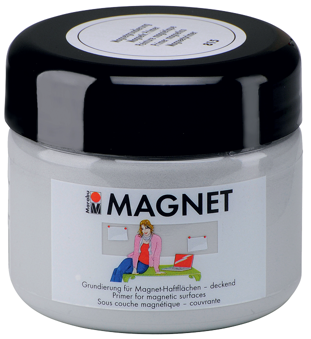 Na površine premazane s premazom Marabu Magnet lahko z magneti enostavno pripenjate slike, sporočila, dopisnice, nakupovalne listke, listke s telefonskimi številkami in še mnogo drugega. Premaz Marabu Magnet, ki vsebuje veliko drobnih železnih delcev, je izdelan na vodni osnovi in je že pripravljen za uporabo. Nanašate ga lahko na različne gladke, čiste, nemastne površine kot so: les, karton, platno, plastika, stiropor, ... Ko se nanos posuši, ga lahko prebarvate in okrasite z različnimi akrilnimi barvami Marabu oziroma ga prebarvate z barvo za tablo Marabu Tafel. Priporočamo uporabo čim močnejših magnetov (npr. EFCO art. št. H10 560 11 - Zelo močni magnetki, Φ10 mm).