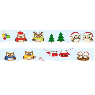 Dekorativni lepilni trak URSUS, 15 mm x 10 m, Božične sovice