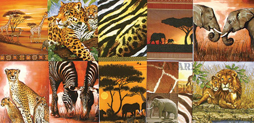 Kakovostne 3 slojne papirnate serviete so, skupaj z ustreznimi mediji za servietno tehniko, primerne za izdelovanje najrazličnejših dekoracij na kartonu, papirju, porcelanu, različnih trdih podlagah in na tkaninah. V vsakem kompletu je 10 različnih papirnatih serviet s tematsko podobnimi motivi.