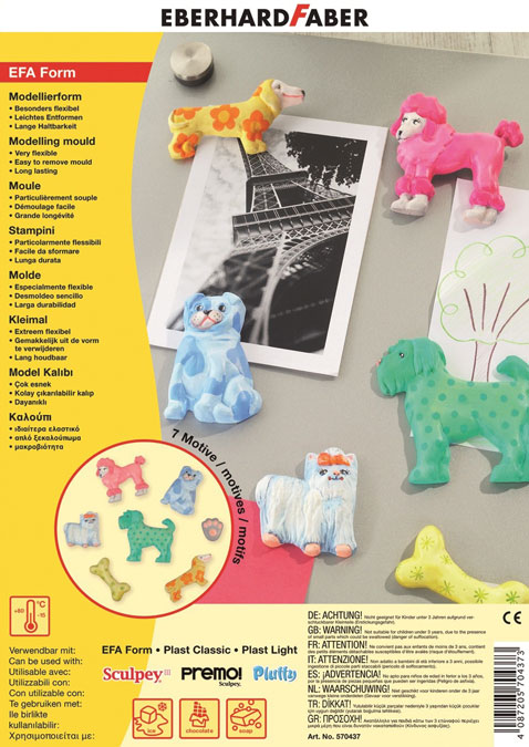 Visokokakovostne kalupe za vlivanje lahko uporabljate za vse vrste keramičnih prahov za vlivanje in vtiskovanje modelirnih mas npr. FIMO (professional, soft, effect), FIMOair (basic, light). Primerni so tudi za vlivanje voska, mila, ... in celo prehrambenih izdelkov, npr. čokolade, sladoleda, ledenih kock, ... Izdelani so iz izjemno močnega polietilena (PE). Odporni so na zmrzal (do -15 °C) in vročino (do 80 °C). Nekatere lahko uporabljate tudi v mikrovalovni pečici. Izdelani so do najfinejših detajlov, zato omogočajo izjemno natančno vlivanje. Ker so izjemno upogljivi, omogočajo zelo enostavno ločevanje odlitka in kalupa. Prosojna plastika omogoča kontrolo površine odlitka med postopkom vlivanja. Če odlitke pazljivo jemljete iz kalupov (jih ne upogibate toliko, da bi se poškodovali), bodo kalupi imeli zelo dolgo življenjsko dobo.