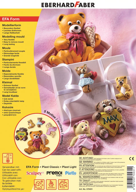 Visokokakovostne kalupe za vlivanje lahko uporabljate za vse vrste keramičnih prahov za vlivanje in vtiskovanje modelirnih mas npr. FIMO (professional, soft, effect), FIMOair (basic, light). Primerni so tudi za vlivanje voska, mila, ... in celo prehrambenih izdelkov, npr. čokolade, sladoleda, ledenih kock, ... Izdelani so iz izjemno močnega polietilena (PE). Odporni so na zmrzal (do -15 °C) in vročino (do 80 °C). Nekatere lahko uporabljate tudi v mikrovalovni pečici. Izdelani so do najfinejših detajlov, zato omogočajo izjemno natančno vlivanje. Ker so izjemno upogljivi, omogočajo zelo enostavno ločevanje odlitka in kalupa. Prosojna plastika omogoča kontrolo površine odlitka med postopkom vlivanja. Če odlitke pazljivo jemljete iz kalupov (jih ne upogibate toliko, da bi se poškodovali), bodo kalupi imeli zelo dolgo življenjsko dobo.