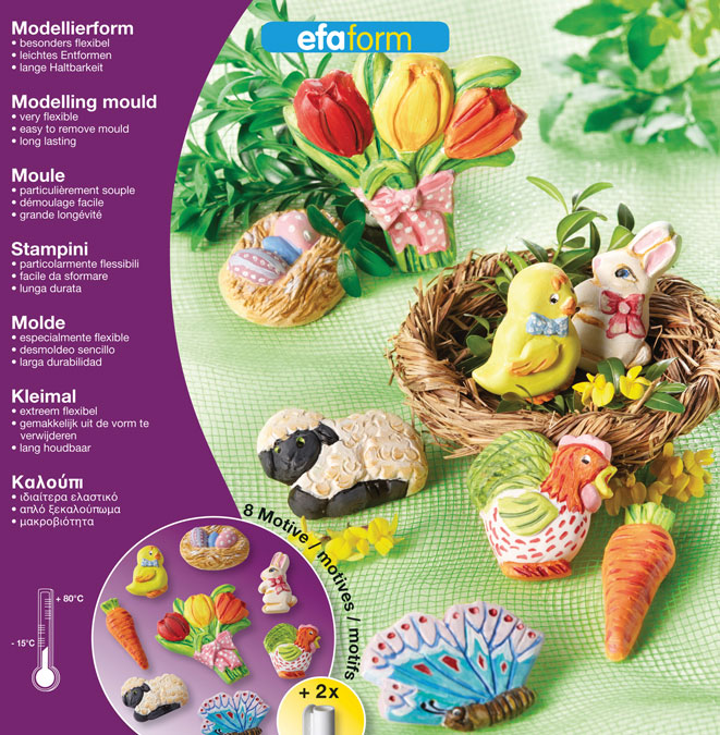 Visokokakovostne kalupe za vlivanje lahko uporabljate za vse vrste keramičnih prahov za vlivanje in vtiskovanje modelirnih mas npr. FIMO (professional, soft, effect), FIMOair (basic, light). Primerni so tudi za vlivanje voska, mila, ... in celo prehrambenih izdelkov, npr. čokolade, sladoleda, ledenih kock, ... Izdelani so iz izjemno močnega polietilena (PE). Odporni so na zmrzal (do -15 °C) in vročino (do 80 °C). Nekatere lahko uporabljate tudi v mikrovalovni pečici. Izdelani so do najfinejših detajlov, zato omogočajo izjemno natančno vlivanje. Ker so izjemno upogljivi, omogočajo zelo enostavno ločevanje odlitka in kalupa. Prosojna plastika omogoča kontrolo površine odlitka med postopkom vlivanja. Če odlitke pazljivo jemljete iz kalupov (jih ne upogibate toliko, da bi se poškodovali), bodo kalupi imeli zelo dolgo življenjsko dobo.