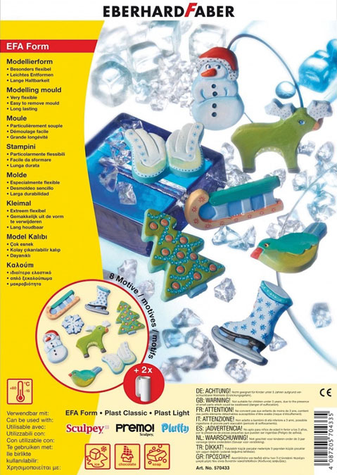 Visokokakovostne kalupe za vlivanje lahko uporabljate za vse vrste keramičnih prahov za vlivanje in vtiskovanje modelirnih mas npr. FIMO (professional, soft, effect), FIMOair (basic, light). Primerni so tudi za vlivanje voska, mila, ... in celo prehrambenih izdelkov, npr. čokolade, sladoleda, ledenih kock, ... Izdelani so iz izjemno močnega polietilena (PE). Odporni so na zmrzal (do -15 °C) in vročino (do 80 °C). Nekatere lahko uporabljate tudi v mikrovalovni pečici. Izdelani so do najfinejših detajlov, zato omogočajo izjemno natančno vlivanje. Ker so izjemno upogljivi, omogočajo zelo enostavno ločevanje odlitka in kalupa. Prosojna plastika omogoča kontrolo površine odlitka med postopkom vlivanja. Če odlitke pazljivo jemljete iz kalupov (jih ne upogibate toliko, da bi se poškodovali), bodo kalupi imeli zelo dolgo življenjsko dobo.