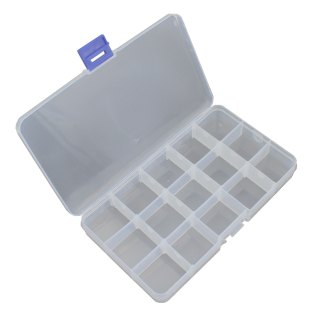 Plastična škatlica, 175 x 100 x 22 mm, 15 predalov, prosojna