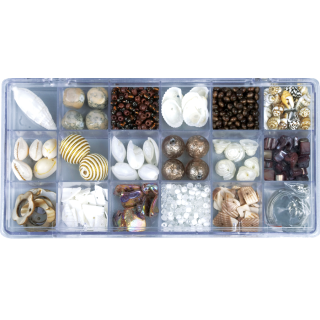 Steklene perle različnih oblik in velikosti so nadvse primerne za izdelavo nakita. Barvno sorodni odtenki perl so pakirani v plastične škatlice, ki so potem, ko jih izpraznite nadvse uporabne za shranjevanje različnih materialov.