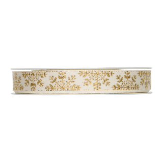 Dekorativni trak, 15 mm, snežinke, zlat, 1 m