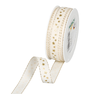 Dekorativni trak, 15 mm, zvezdice, krem / zlat, 8 m