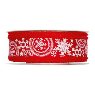 Dekorativni trak, 35 mm, snežinke, rdeč, 1 m