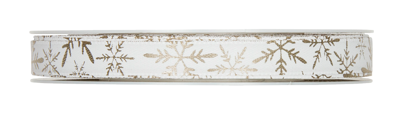 Satenast trak, 10 mm, snežinke, bisern, 1 m
