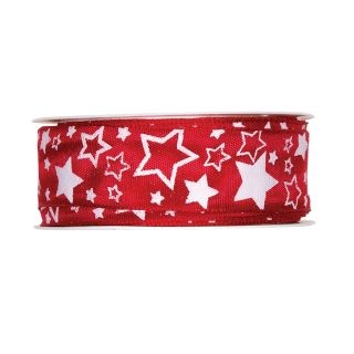 Trak z žico, 25 mm, zvezdice, rdeč / bel, 6 m
