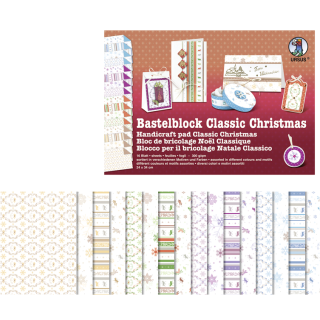 V bloku je 16 pol fotokartona, obojestransko potiskanega s 4 božičnimi motivi v štirih barvah.