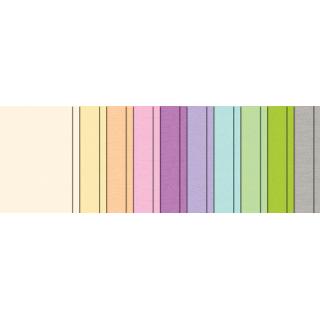 Blok vsebuje 10 pol barvnega papirja (130 g, 23 x 33 cm) in 10 pol fotokartona (300 g, 23 x 33 cm) - 10 barvno usklajenih parov. Papir in fotokarton sta obarvana že v fazi izdelave papirne mase, zato ob razrezovanju ali trganju ne nastaja moteč bel rob. Oba sta obarvana s pastelnimi barvami, ki na svetlobi ne obledijo.