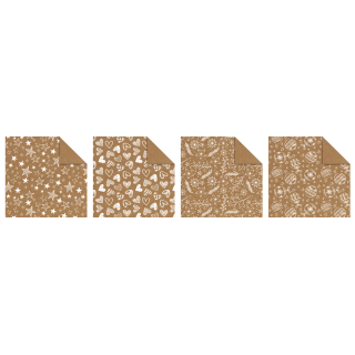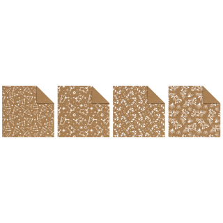 Komplet eko papirjev za zgibanje "Božični motivi", velikosti 15 x 15 cm vsebuje 100 pol eko papirja (80 g) enostransko potiskanega z 10 različnimi Božičnimi motivi. Priložena so tudi navodila za zgibanje.