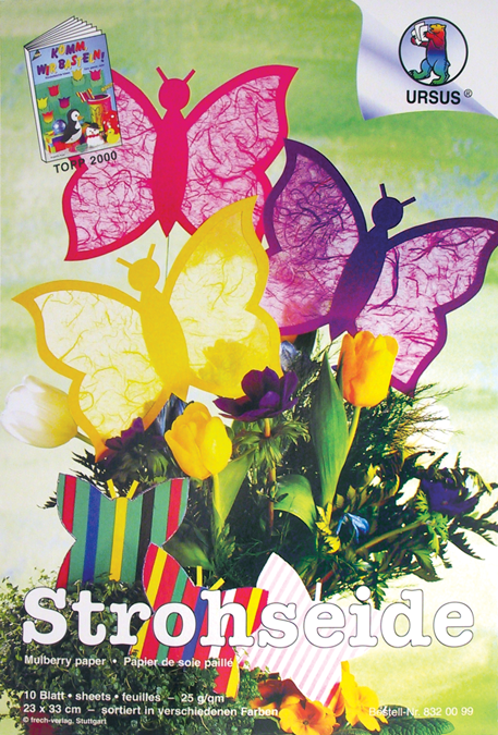 Vsebina: 10 listov (25 g, 23 x 33 cm) prosojnega, izredno tankega in lahkega papirja v različnih barvah. V papirju je dobro vidna struktura (vlakna), kar daje papirju izreden dekorativen učinek. Papir je primeren za aranžiranje, za izdelavo voščilnic (dodatek), kot del figuric, kjer je pomembna majhna teža uporabljenega materiala (npr. krila) ali za samostojne dekoracije.