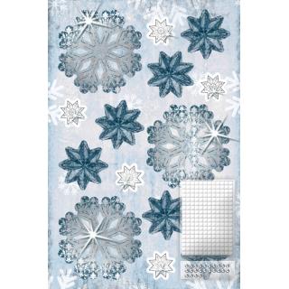 Komplet vsebuje vse potrebno za izdelavo 24 trislojnih snežink (Φ 9 cm) in 24 trislojnih zvezdic (Φ 4.6 cm). Posamezni sestavni deli snežink in zvezdic so že izsekani, delno so okrašeni z bleščicami. Priloženi so tudi okrasni kamenčki, lepilne blazinice in slikovna navodila.