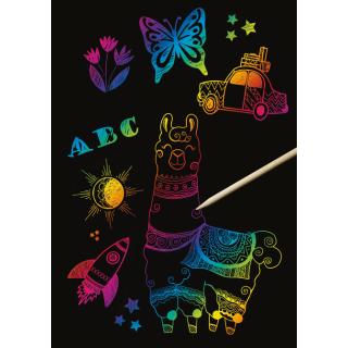 Na pole z natisnjeno mavrično osnovo je nanešen črn premaz za praskanje. Vanj ustvarjalci vpraskajo željeni motiv, v praskah pa se pojavijo mavrični vzorci s podlage. Pri delu si lahko pomagajo z različnimi šablonami. Izvrsten pripomoček so tudi risalne šablone URSUS (B441000xx – pravljični svet, avtomobili - dinozavri ali živali). Komplet vsebuje 10 praskank v dimenziji A4, palčko iz bambusa za praskanje in slikovna navodila oz. ideje kako oblikovati vzorec.